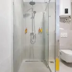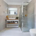 Die Apartments verfügt über ein Badezimmer mit einem Haartrockner und Badelaken. Außerdem gibt es hier eine begehbare Dusche.